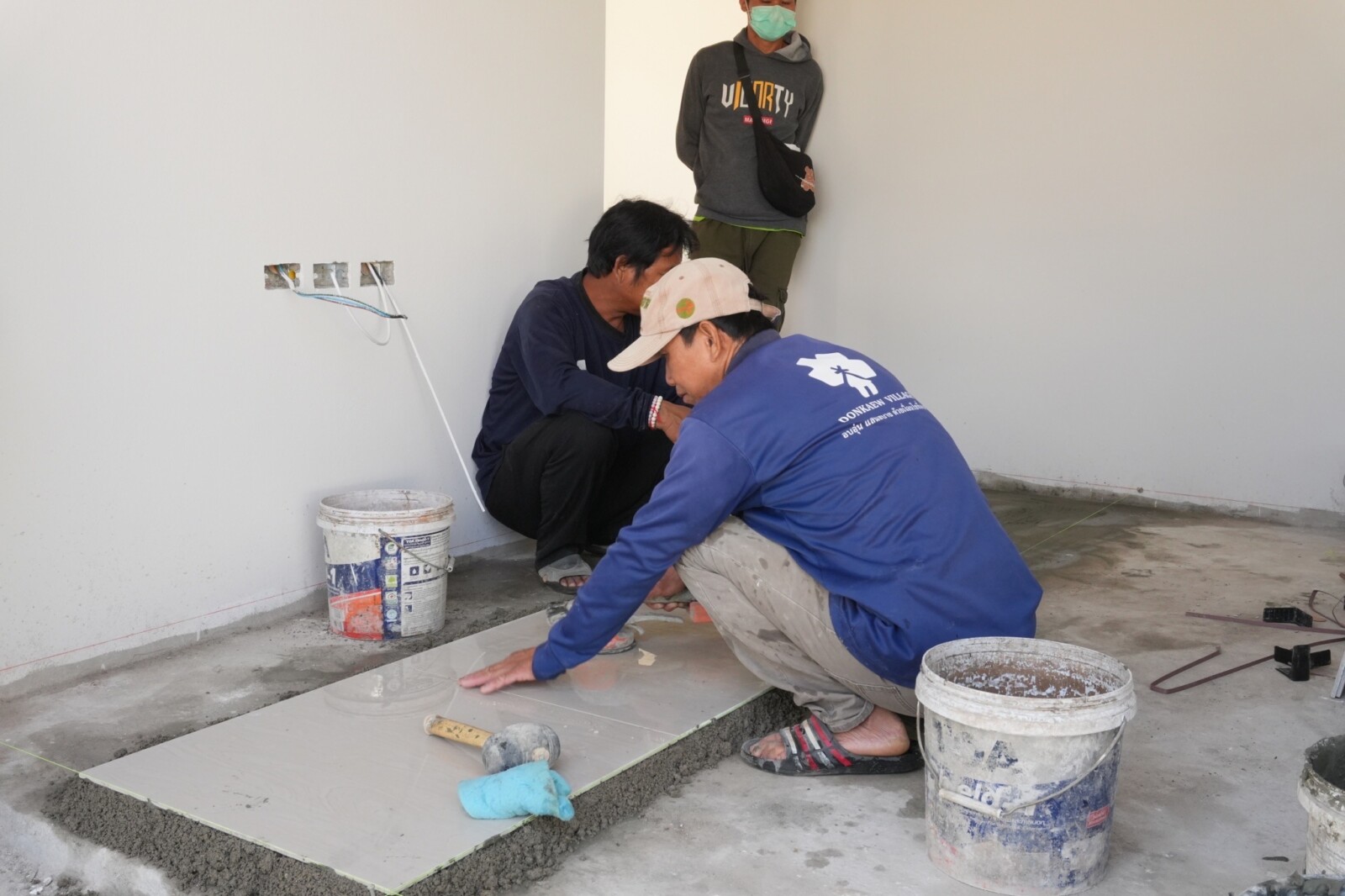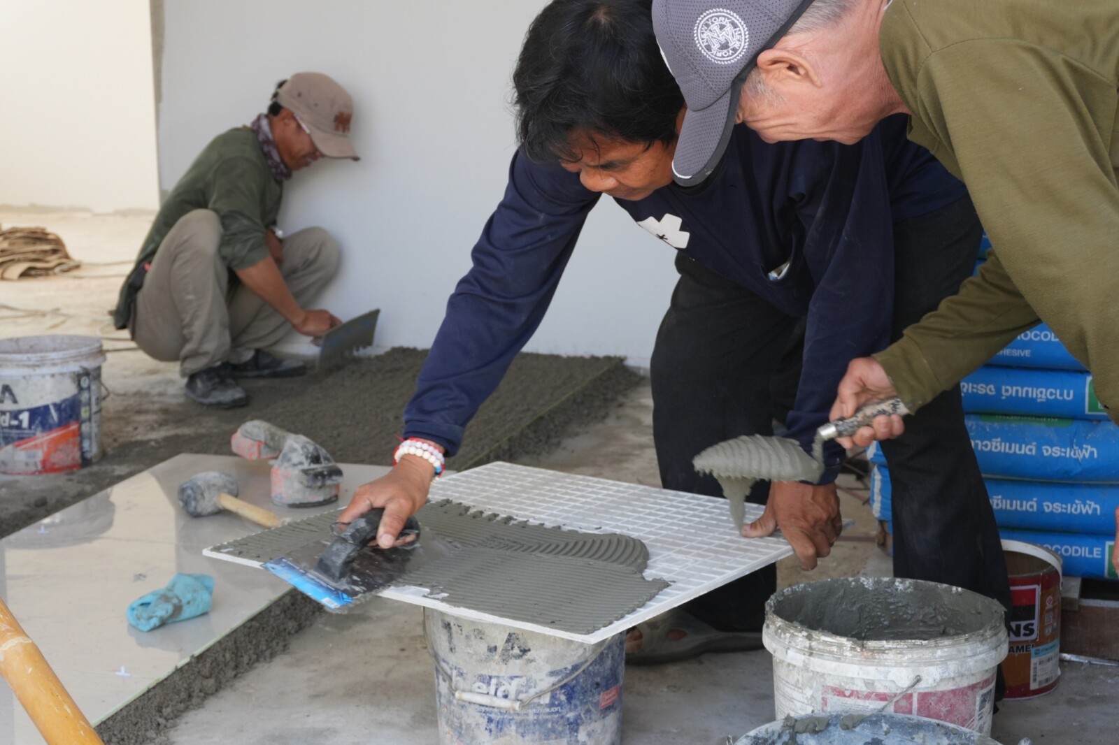 ดอนแก้ว วิลเลจ ร่วมกับ ปูนกาวซีเมนต์ตราเสือ จัดอบรมเสริมทักษะเทคนิคการปูกระเบื้อง
